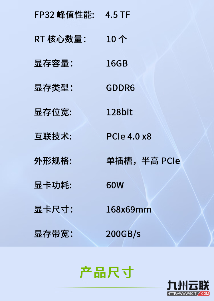 英伟达NVIDIA A2 Tensor Core GPU计算显卡(深度学习/训练推理/人工智能/AI加速/大模型——适用于服务器)