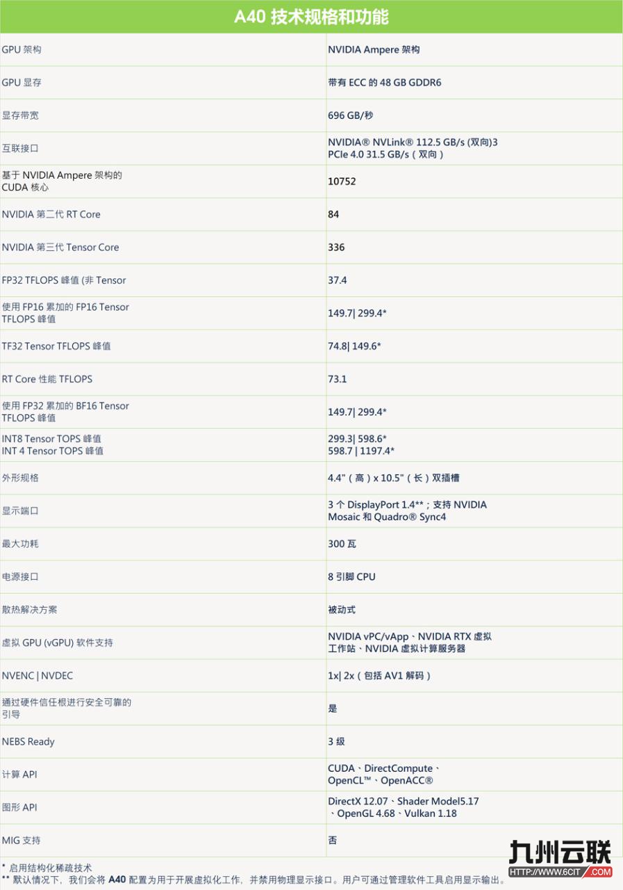 英伟达NVIDIA A40 Tensor Core GPU计算显卡(深度学习/训练推理/人工智能/AI加速/大模型——适用于服务器)