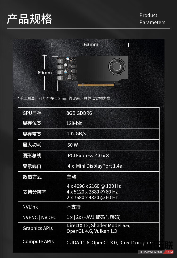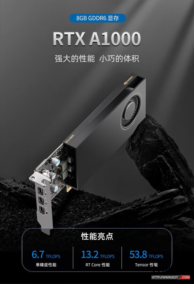 英伟达NVIDIA RTX A1000专业显卡(3D绘图/设计/视频剪辑/AI加速/多屏显卡——适用于服务器和图形工作站)