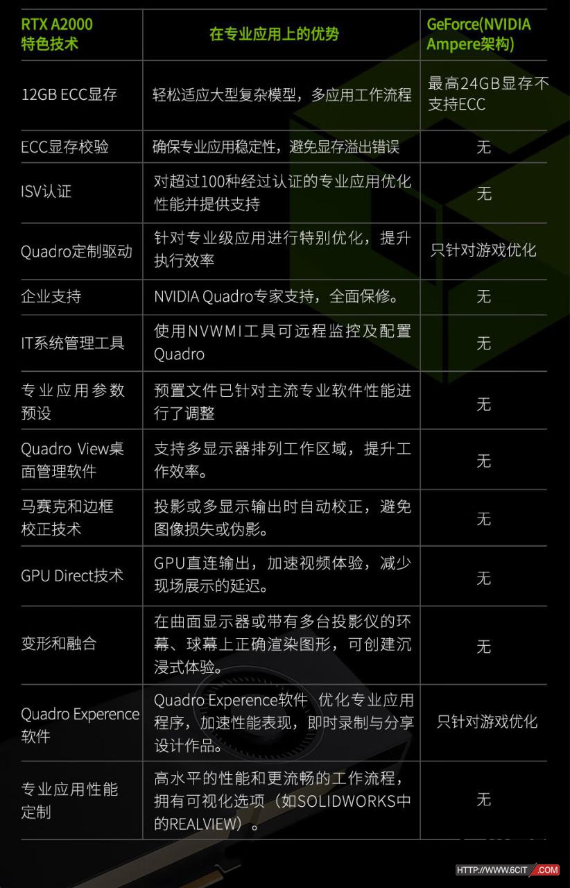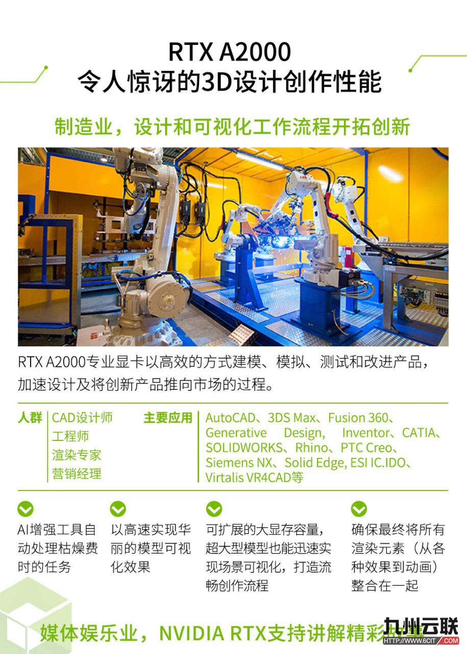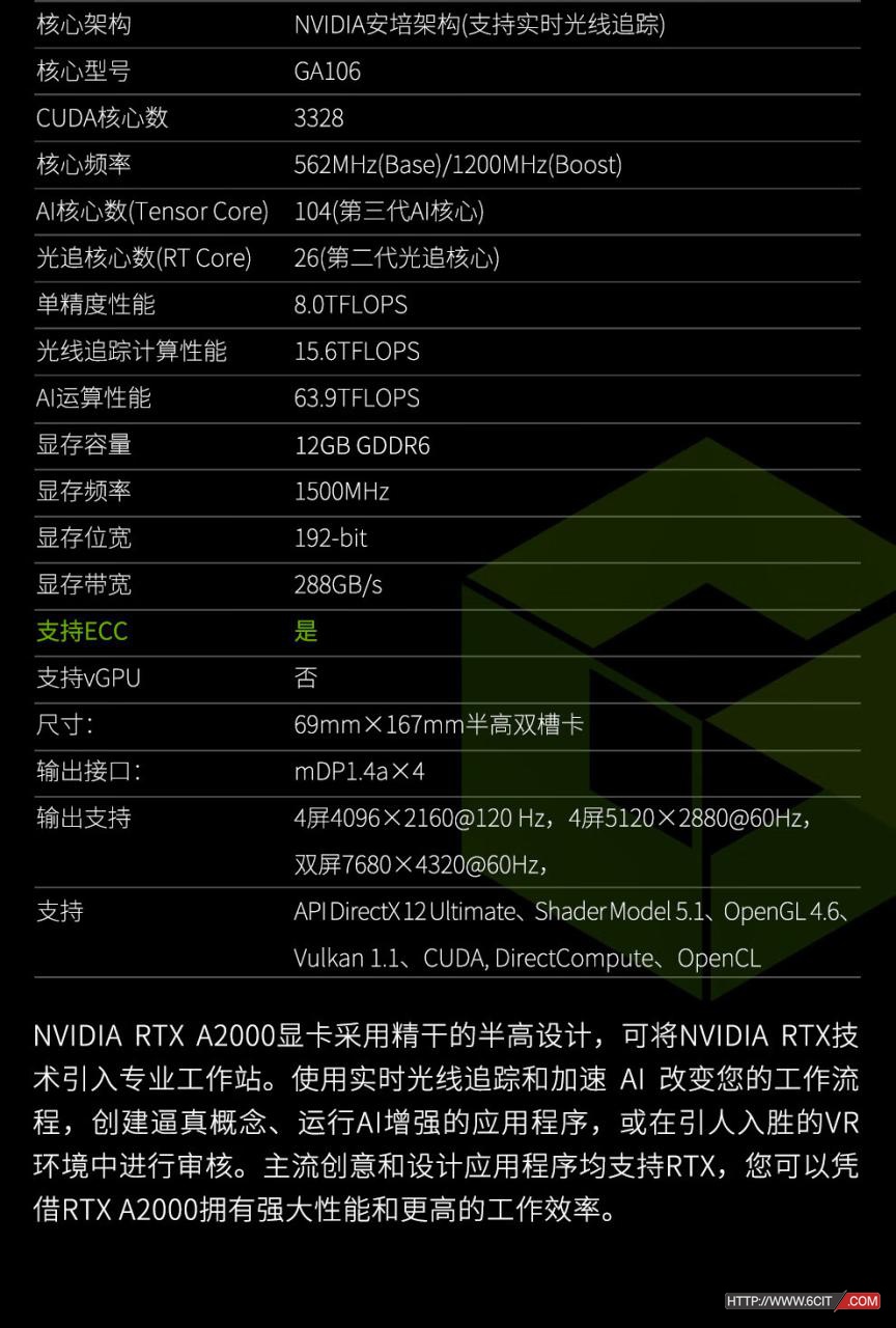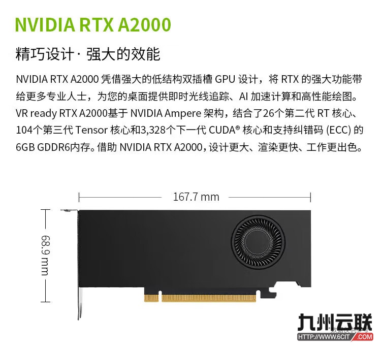 英伟达NVIDIA RTX A2000专业显卡(3D绘图/设计/视频剪辑/AI加速/多屏显卡——适用于服务器和图形工作站)