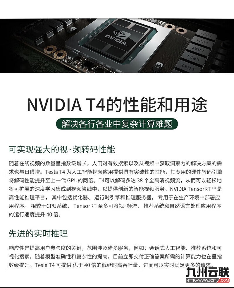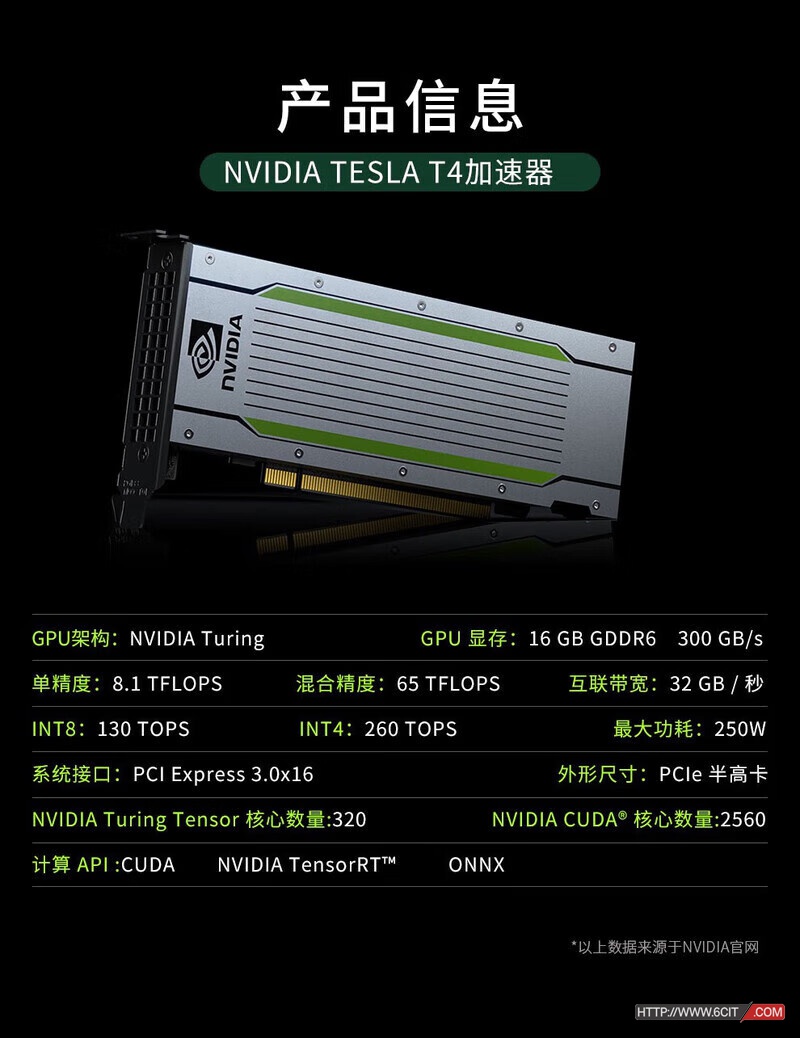英伟达NVIDIA Tesla T4 GPU计算显卡(深度学习/训练推理/人工智能/AI加速/大模型——适用于服务器)